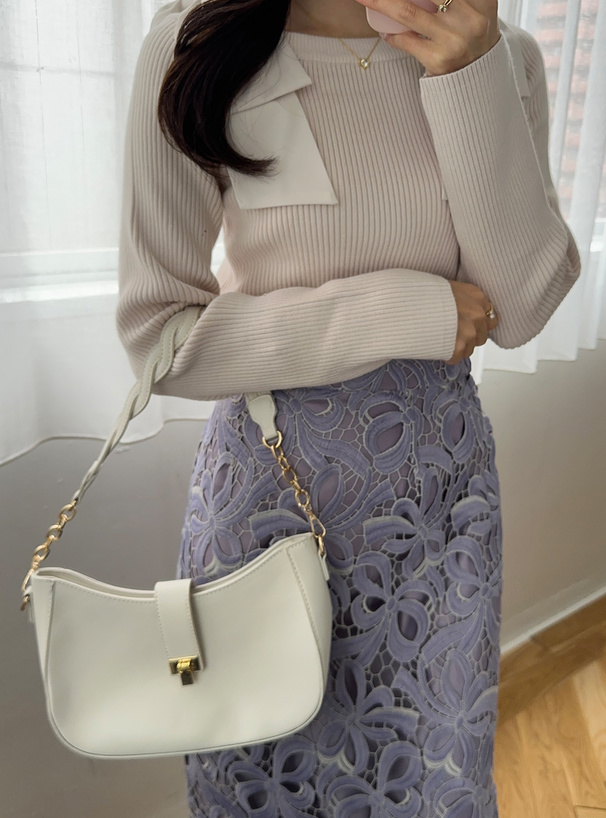 優雅な花柄レースが全面にあしらわれたマーメイドスカート。透け感があり、裾レースが女性らしさを引き立て、特別なシーンにもぴったり。軽やかな動きと華やかさを演出し、コーディネートに洗練された印象を与えます。デートやパーティーなど、様々な場面で活躍する一着です。